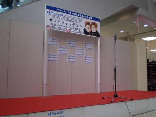 今日は2007年M-1チャンピオンのサンドウィッチマンが 仙台でラジオの公開録音を兼ねた凱旋トークライブをするということでイトーヨーカドー仙台泉店に来てみた。 ここは小さい頃よく遊びに来ていたところなので馴染み深いところなんだよね。 イベントスペー…